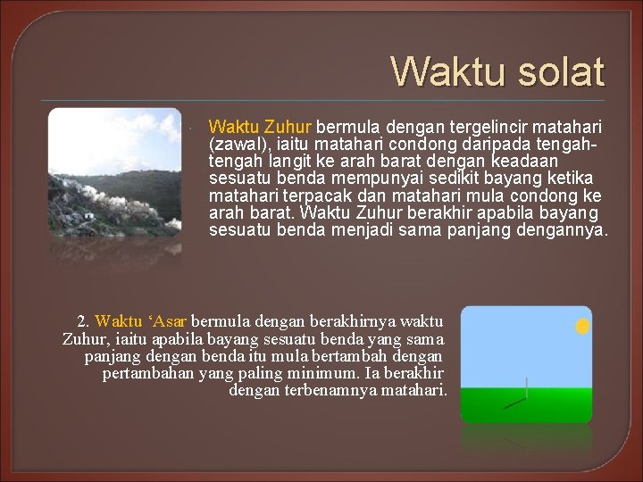 1st - 6th grade. Selepas melaksanakan solat subuh sehingga terbit matahari. 5 Semasa matahari hampir terbenam sehingga tenggelam seluruh bulatannya.